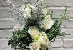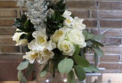 白色の花々とシルバーグレーのグリーン(葉物)を使って、静かな雪景色を思わせるホワイトクリスマ...
