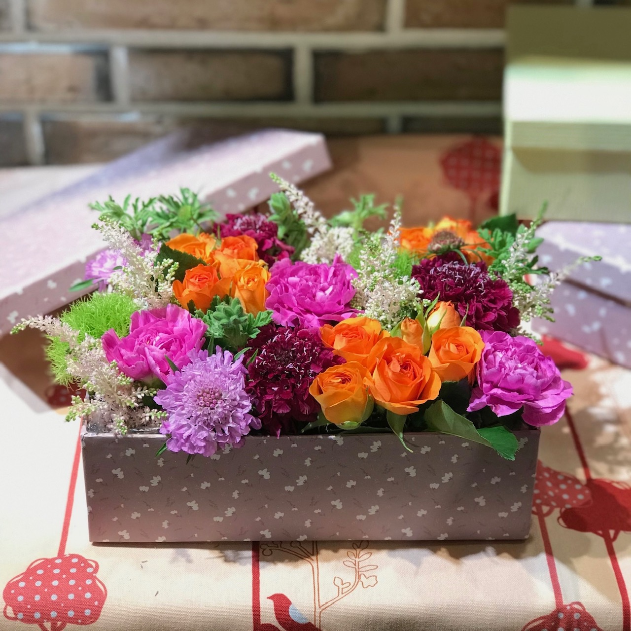 ※写真はこれまでのボックスアレンジメント作品です。実際に制作する作品とは異なります。