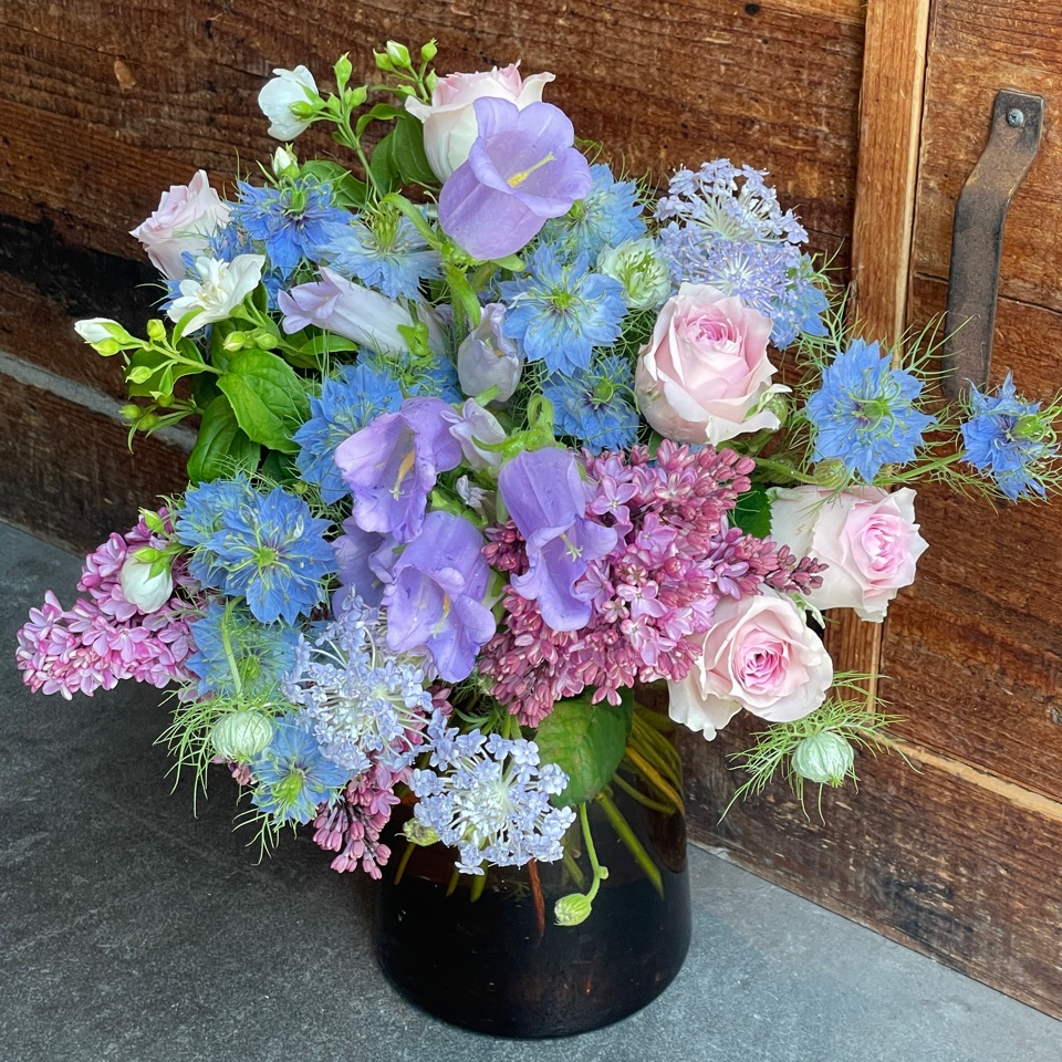 軽やかに揺れ動くライラックと甘い香りのバラの組み合わせで、エレガントで洗練されたブーケに仕上げます。
